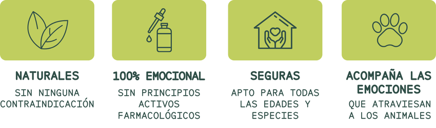 Fórmula floral creada especialmente para animales, realizada con esencias de Bach, California, Bush y Saint Germain. No contiene principios activos farmacológicos.