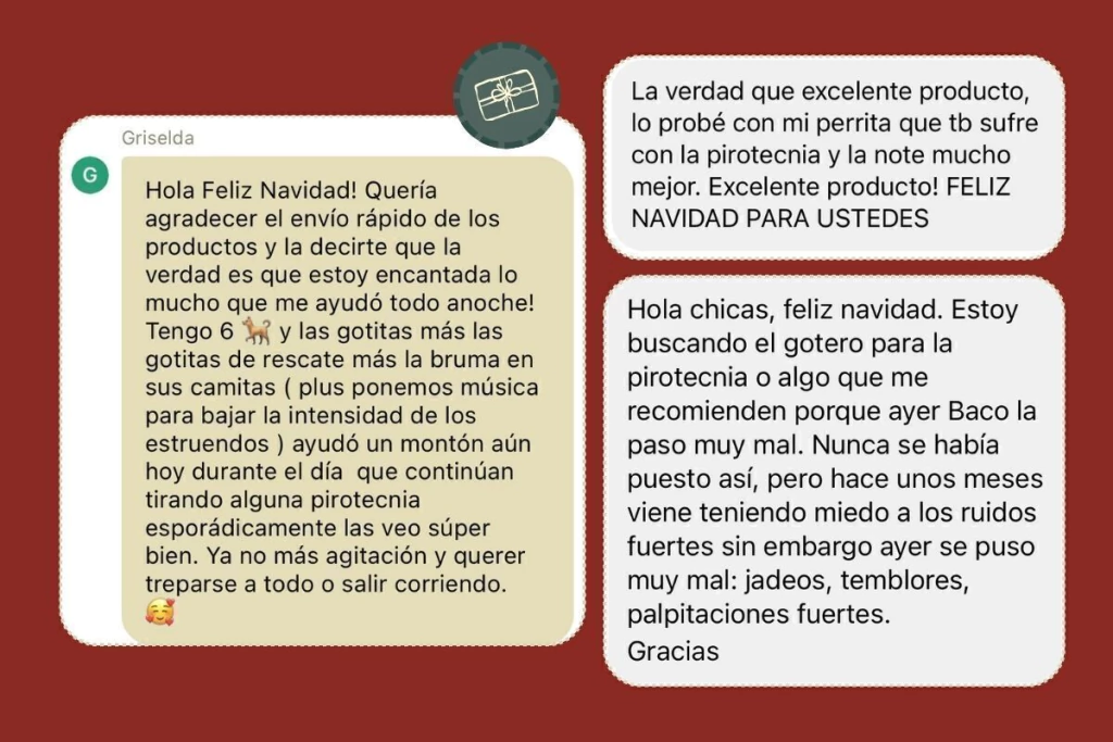 🎄 Es ideal empezar a usar el gotero Pirotecnia cuanto antes para que el animal llegue más preparado a los días de estruendos.
